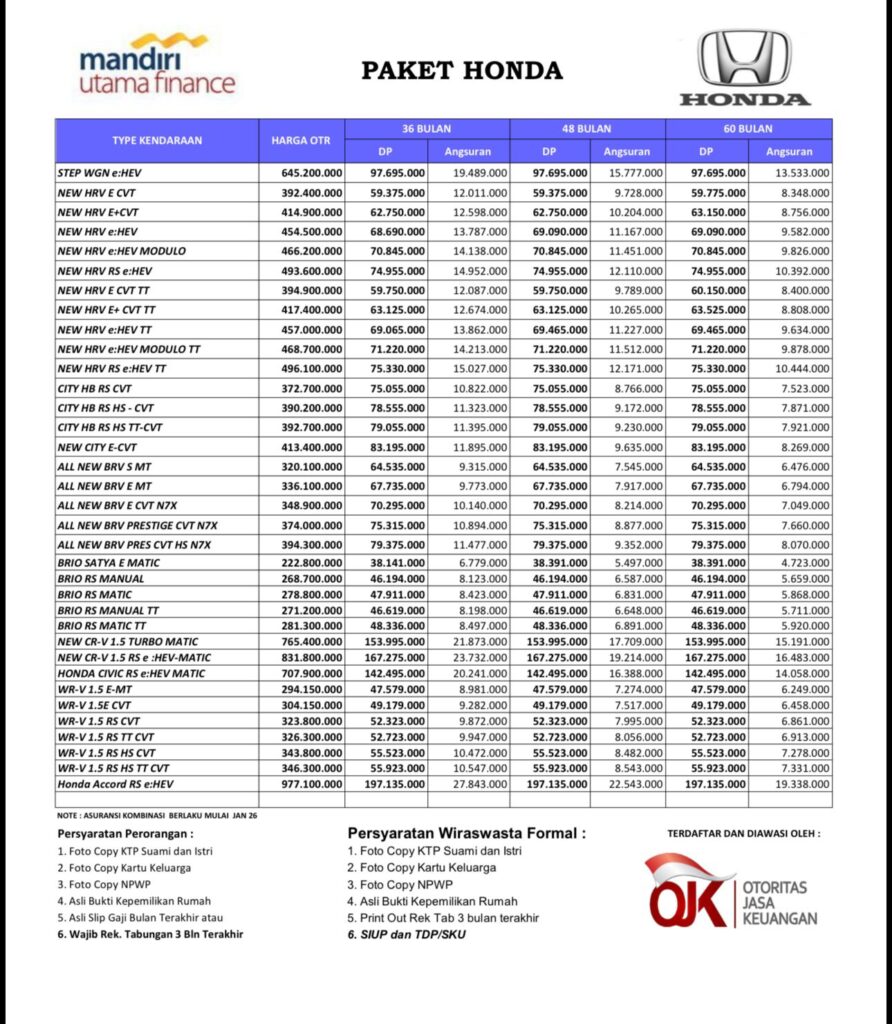 Minta Penawaran Honda Terbaru